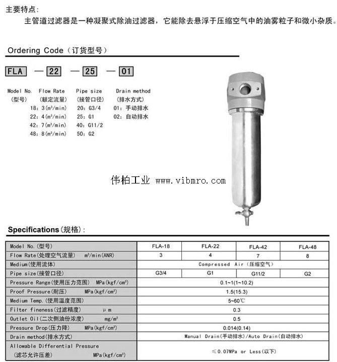 产品标题:FLA-22,过滤器,WPI主管道过滤器